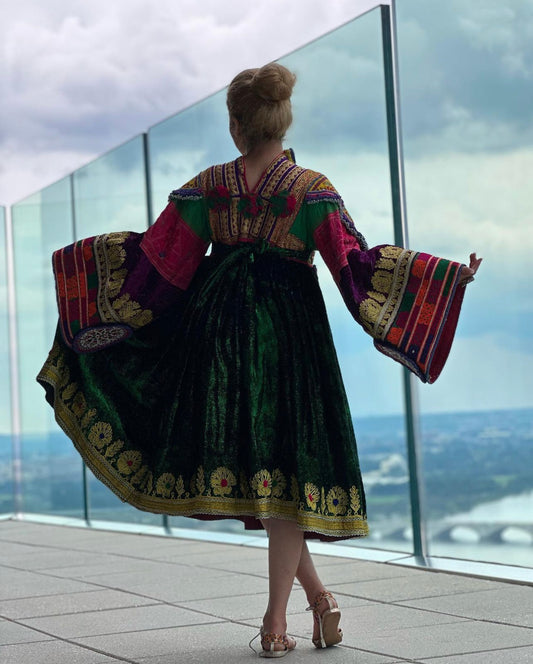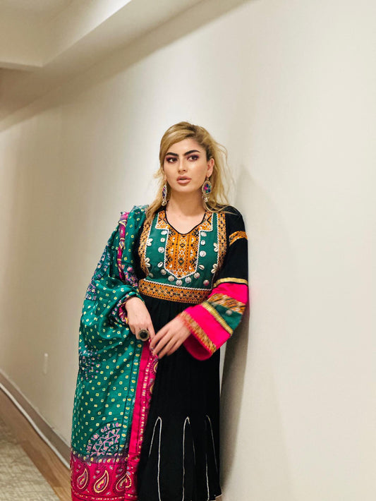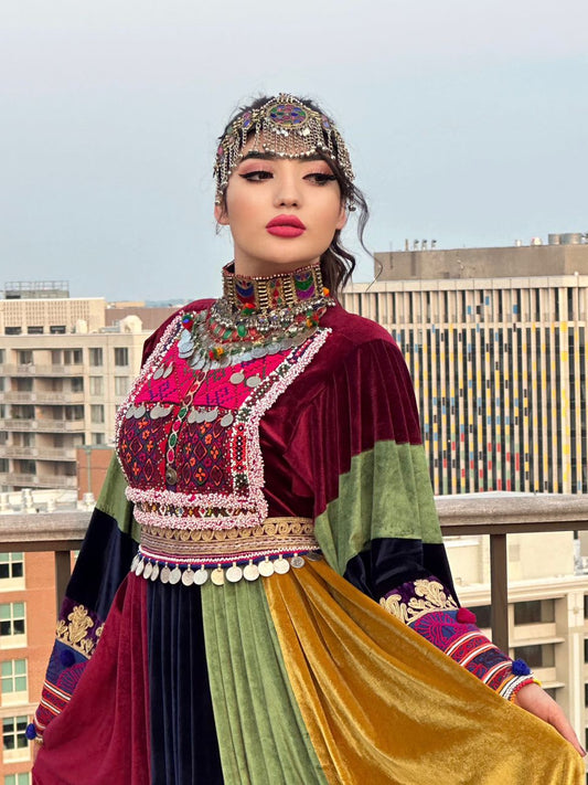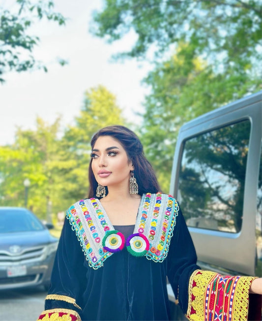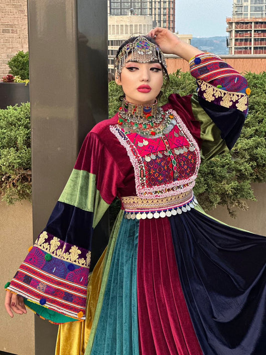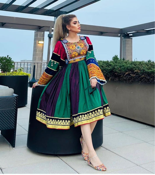 Sold outMulti Color Bakhmal Afghan Dress