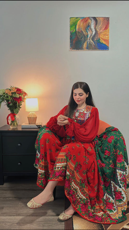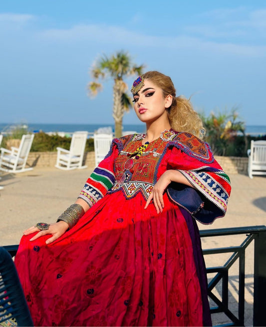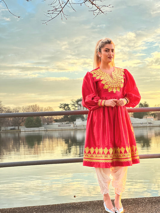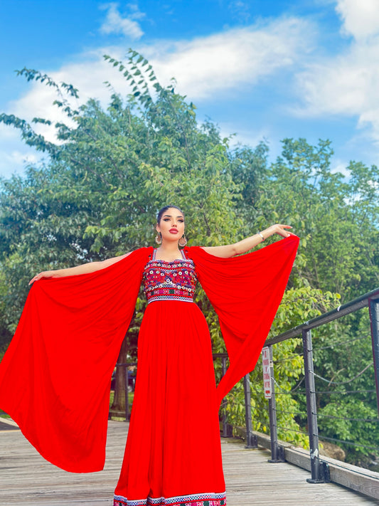 Ruby Red Velvet Afghan Dress