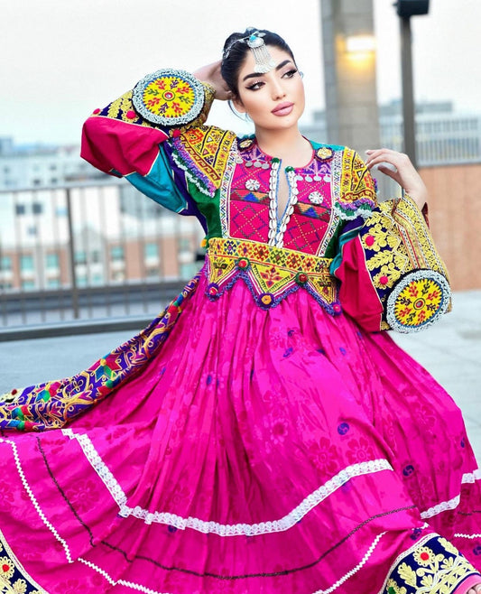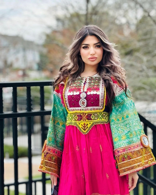 Fuscia Pink - Gul Bakhmal Afghan Dress
