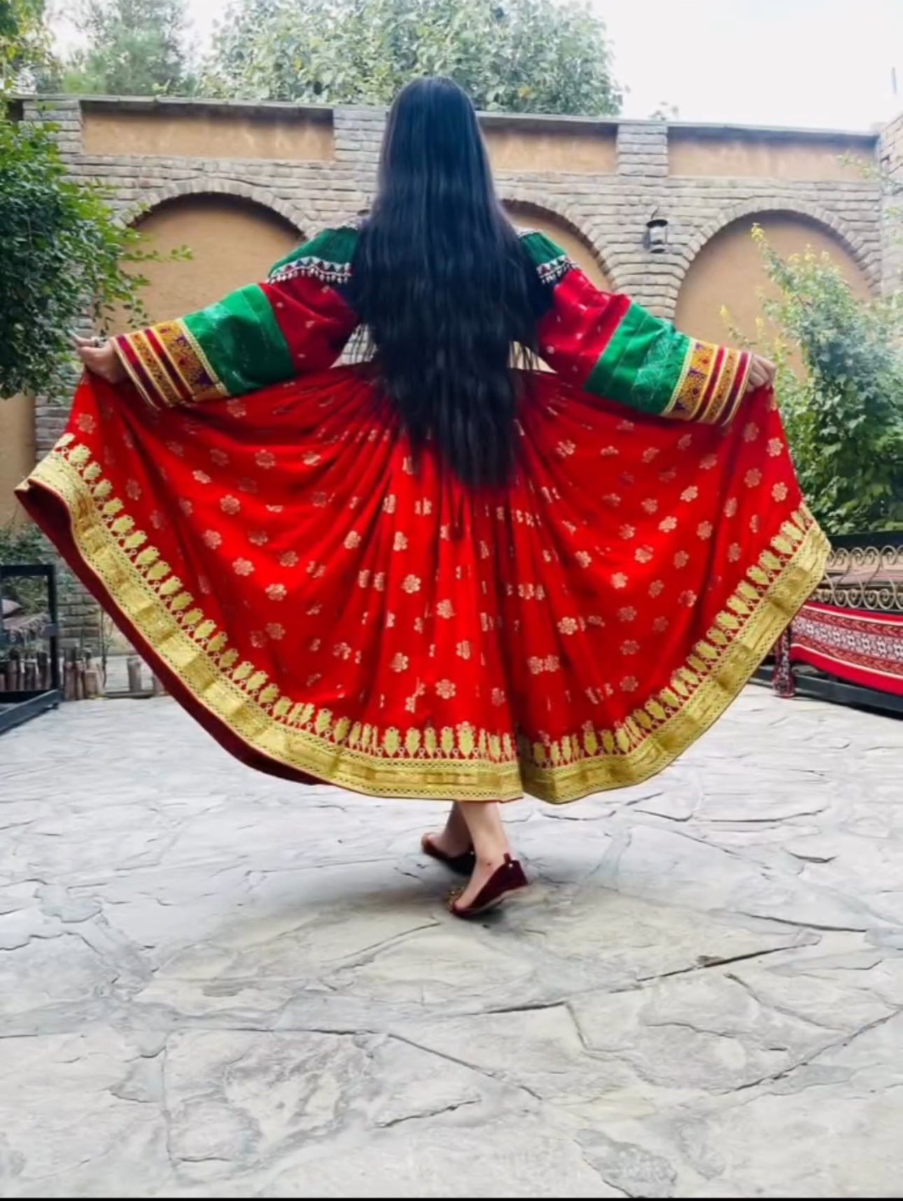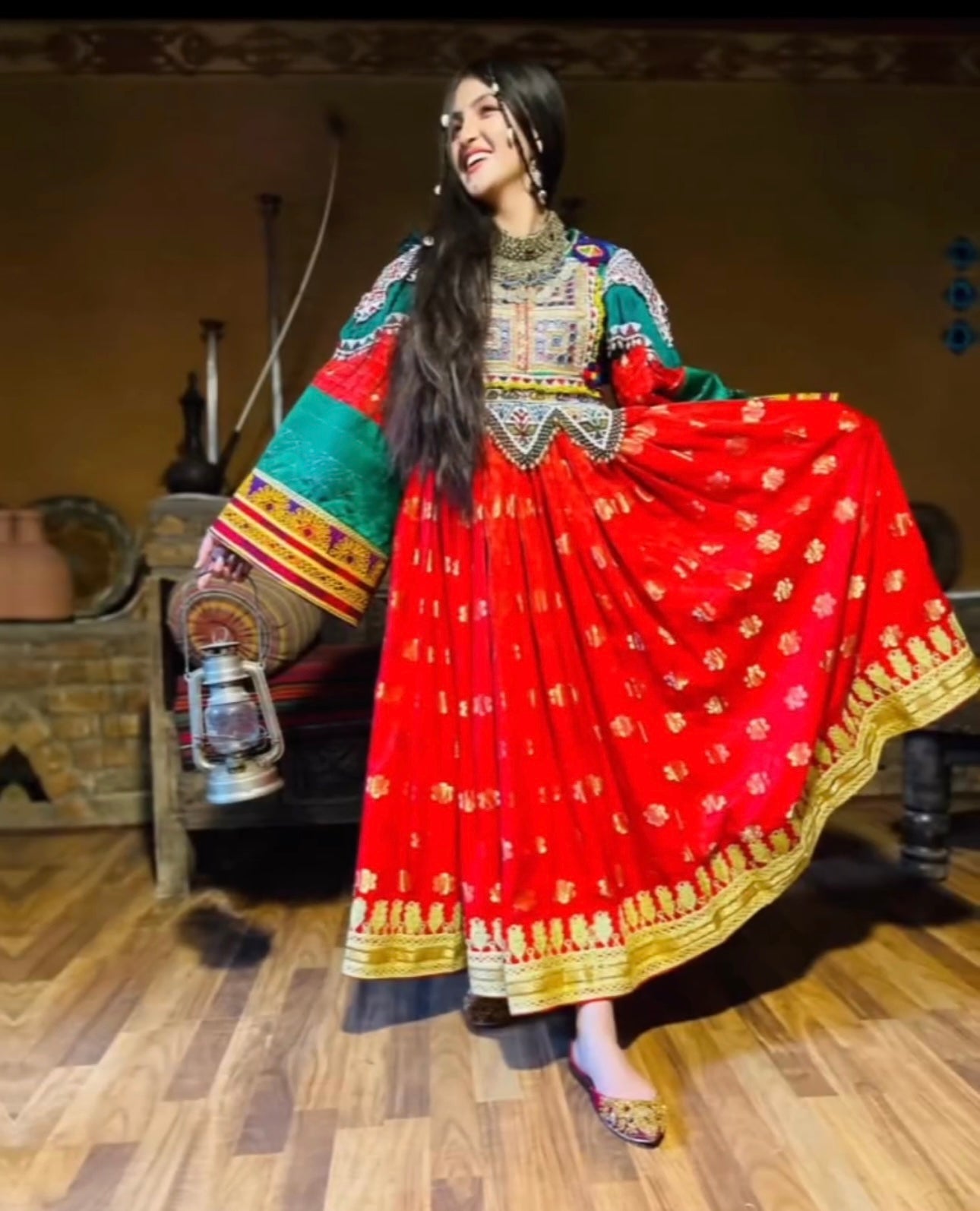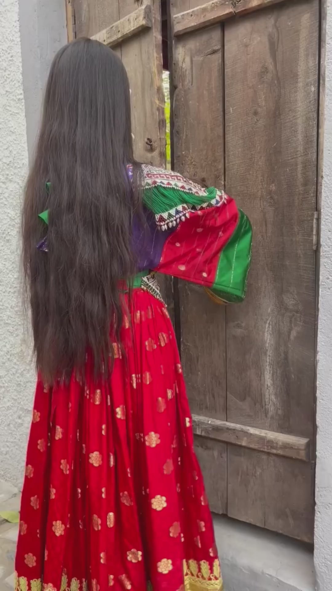 Crafted from high quality antique pieces of amazing handwork picked from traditional Afghan dresses, such as Zartar Dozi, Mora Dozi, Cherma Dozi, and Ayna Dozi. Made with high-quality Luxurious Gul banares fabric. Available in large size. Perfect for wedding and special occasions.