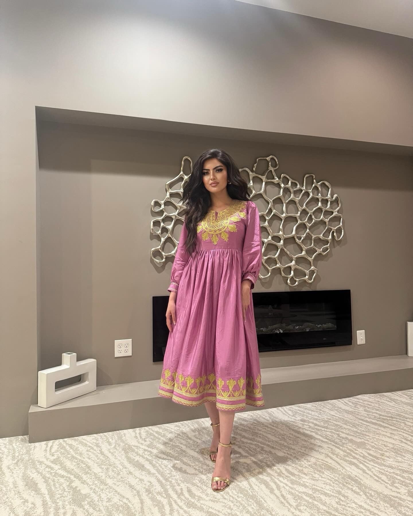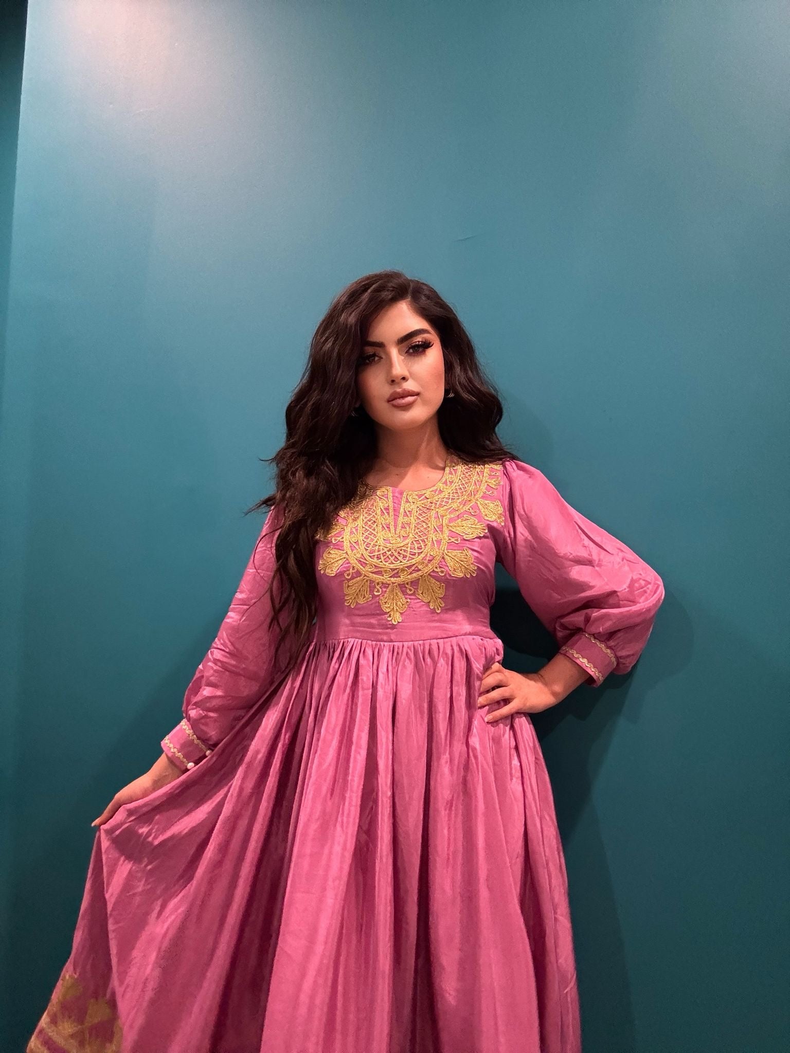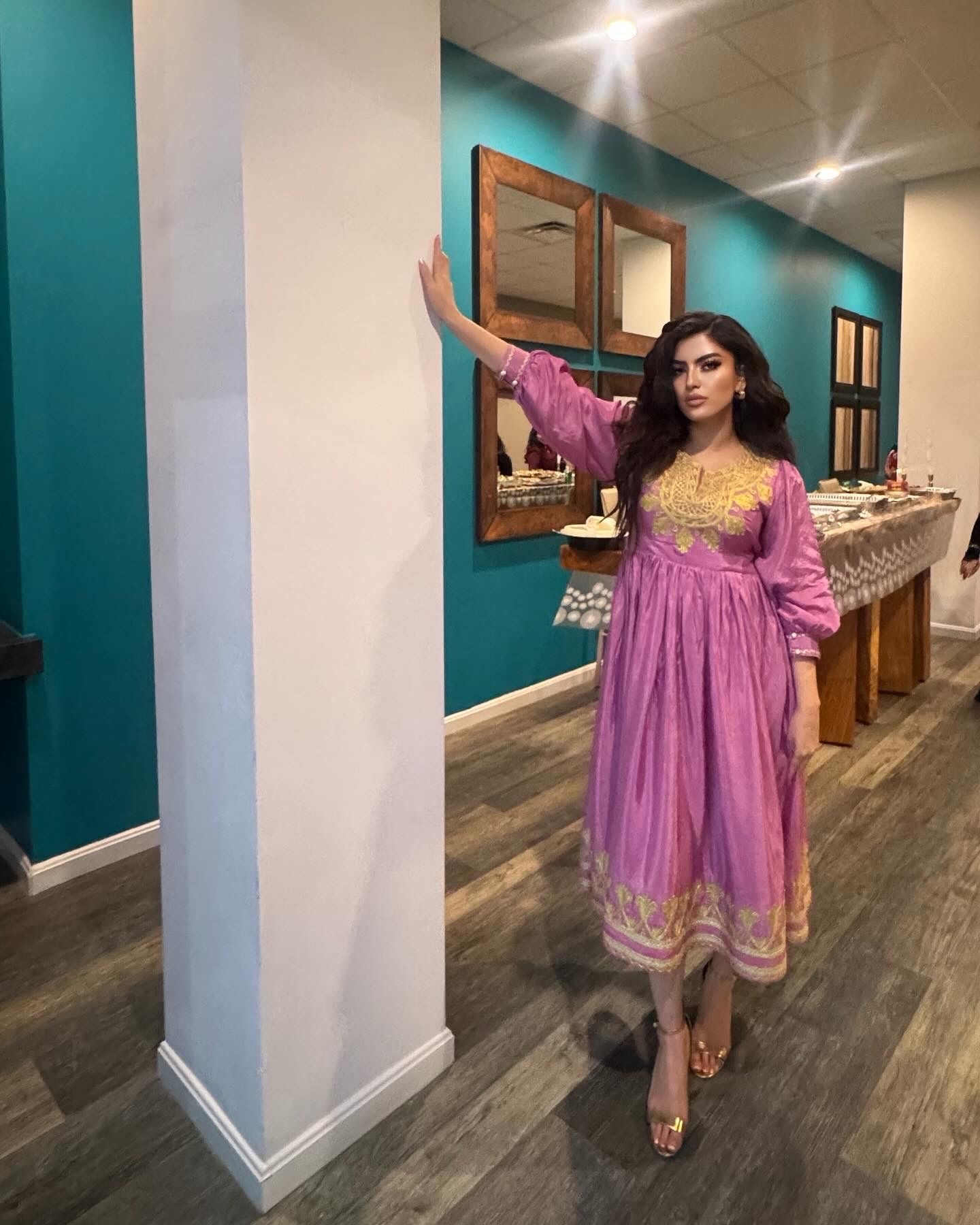 Made from higual quality Layli Meten fabric adorned with intricate Cherma Dozi embroidery, this dress is available in mint green color and comes in small, medium, and large sizes can be worn for various occasions.