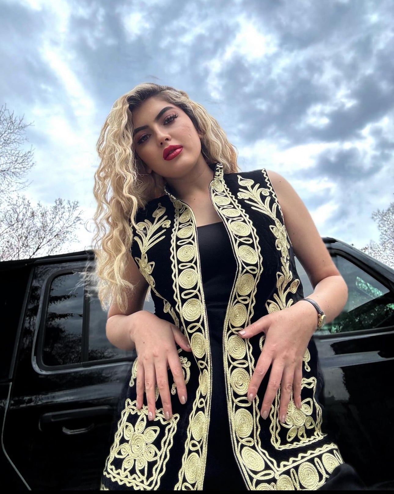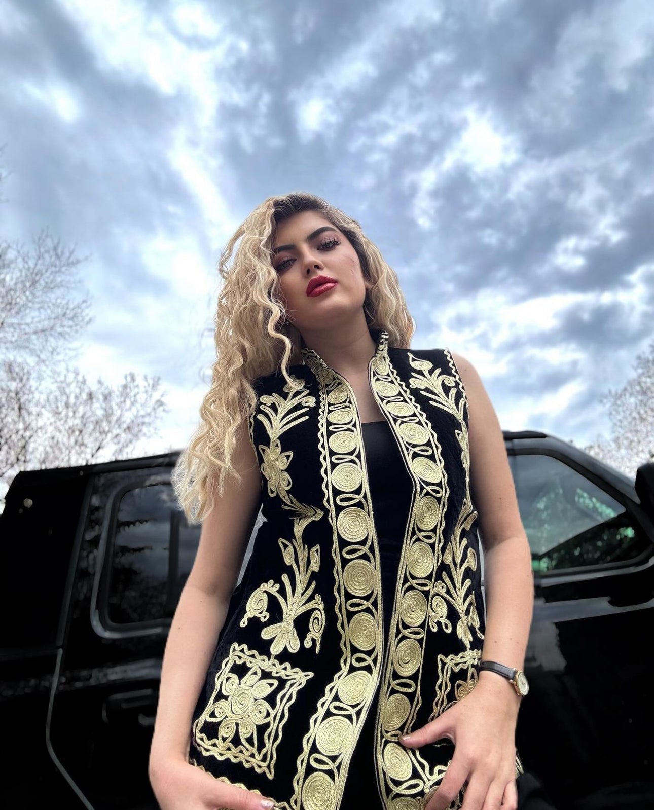Cherma Dozi women long blazer jacket, a modern take on Afghan traditional embroidery. Made from high-quality velvet fabric and adorned with intricate Cherma Dozi embroidery, this blazer jacket is available in black, with silver and gold Cherma Dozi and comes in small, medium, and large sizes. Combining elegance and cultural heritage, it offers a flattering silhouette and can be worn for various occasions.