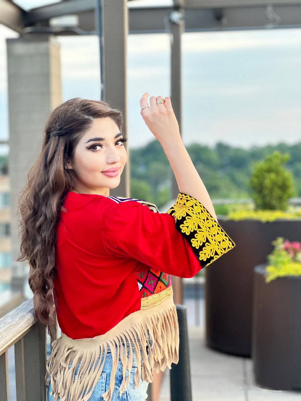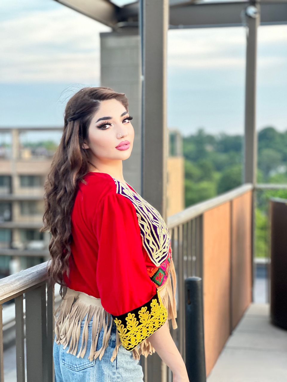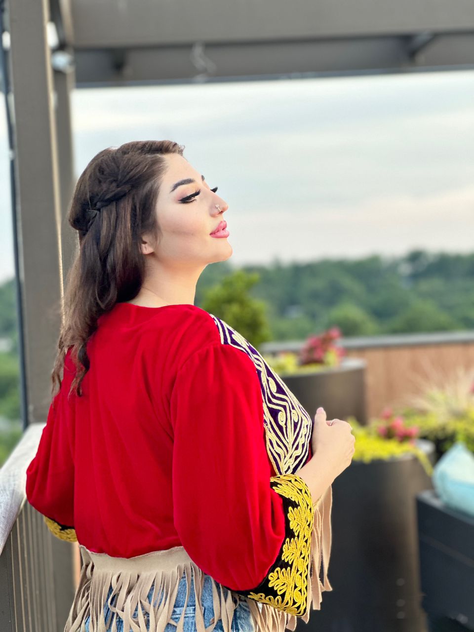 Cherma Dozi crop top a modern take on Afghan traditional embroidery. Made from high-quality velvet fabric and adorned with intricate Cherma Dozi embroidery.