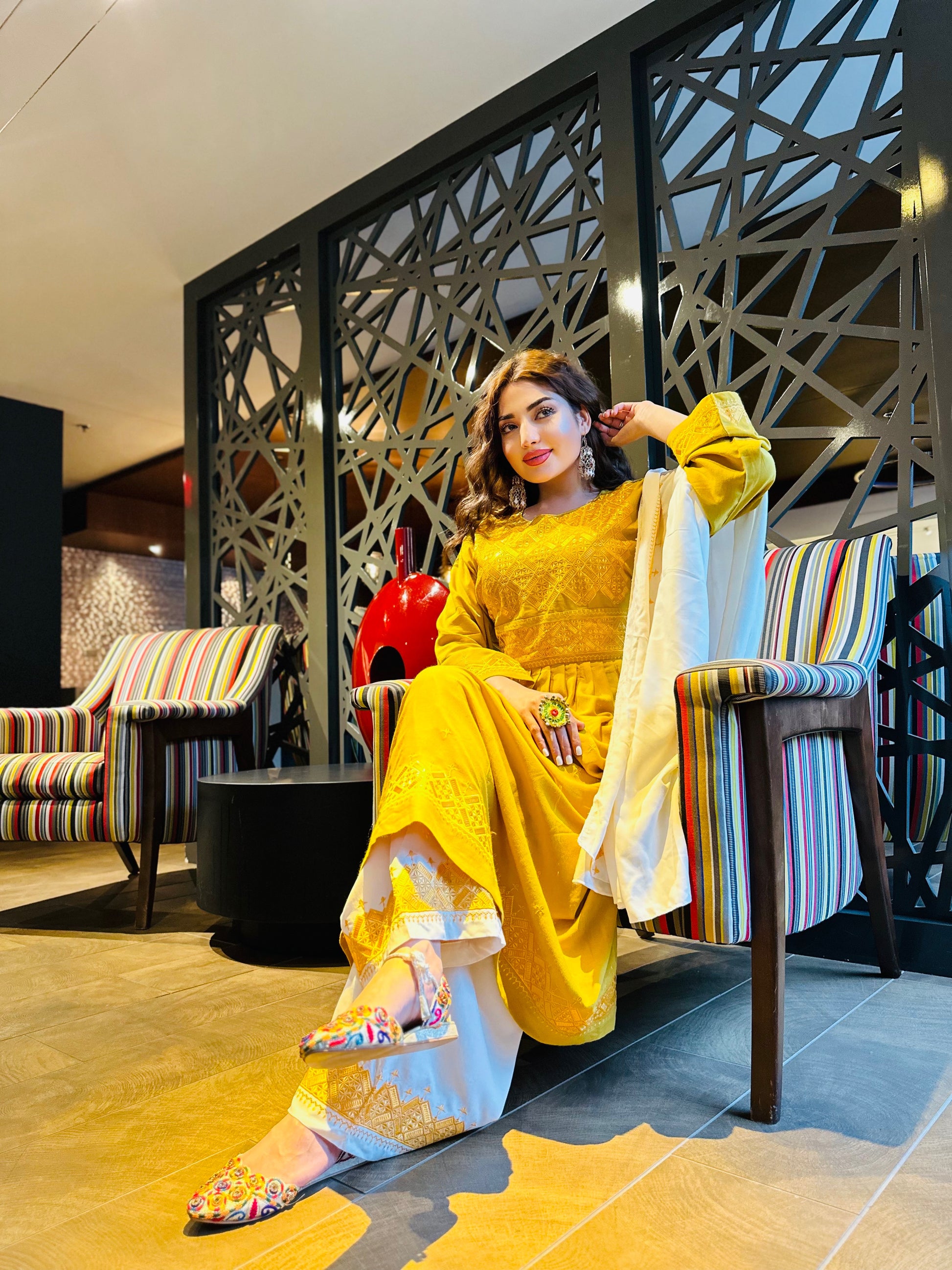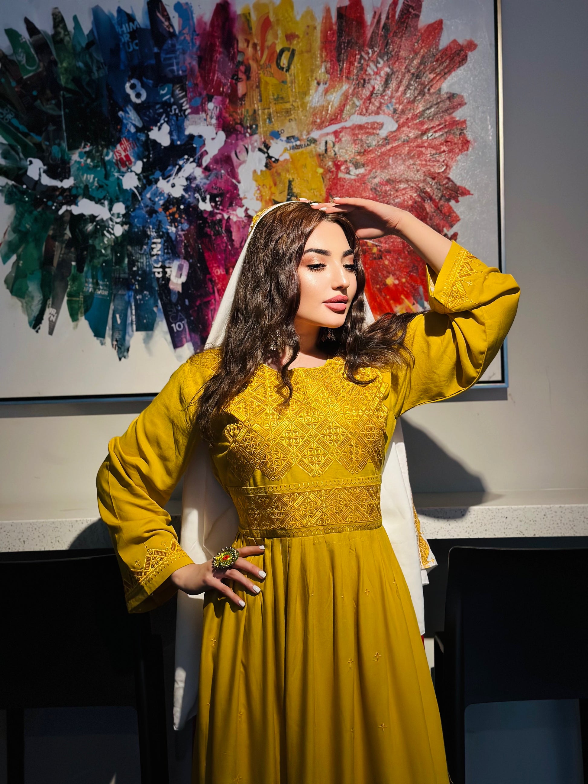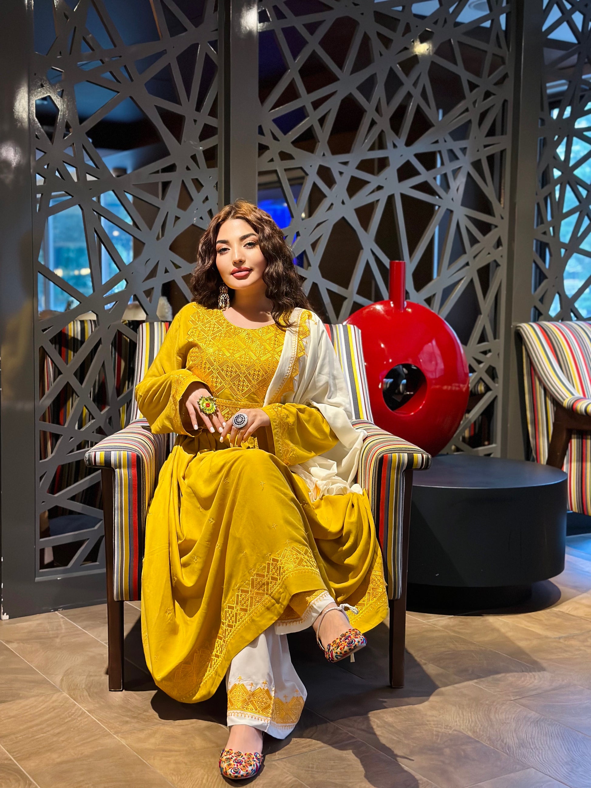 Stunning Hazaragi traditional outfit, includes the dress with matching pant and Shawl. Made with high-quality cotton fabric and adorned with Khamak Dozi. Available in small, medium and large sizes. Perfect for any occasion.