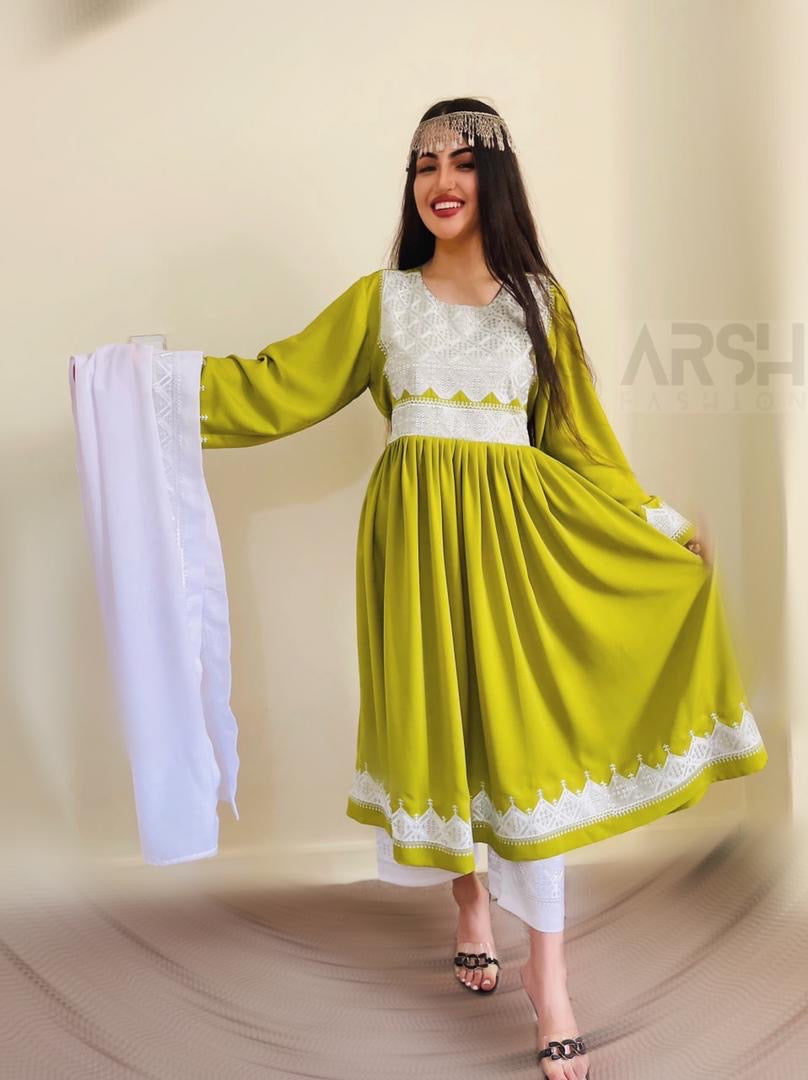 Stunning Hazaragi traditional outfit, includes the dress with matching pant and Shawl. Made with high-quality cotton fabric and adorned with Khamak Dozi. Available in small, medium and large sizes. Perfect for any occasion.