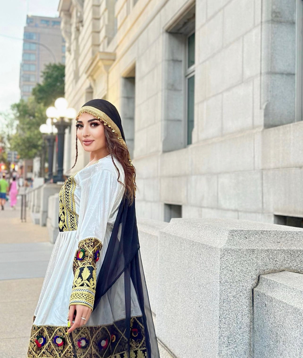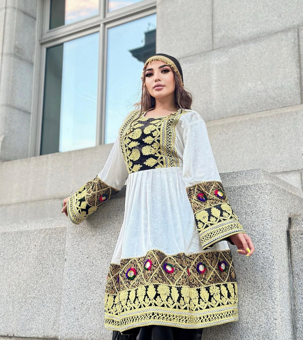 A modern take on Afghan traditional embroidery. Embrace the beauty of Afghan embroidery with this captivating and versatile dress, making a stylish statement wherever you go.