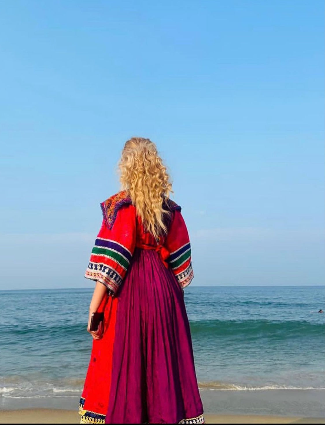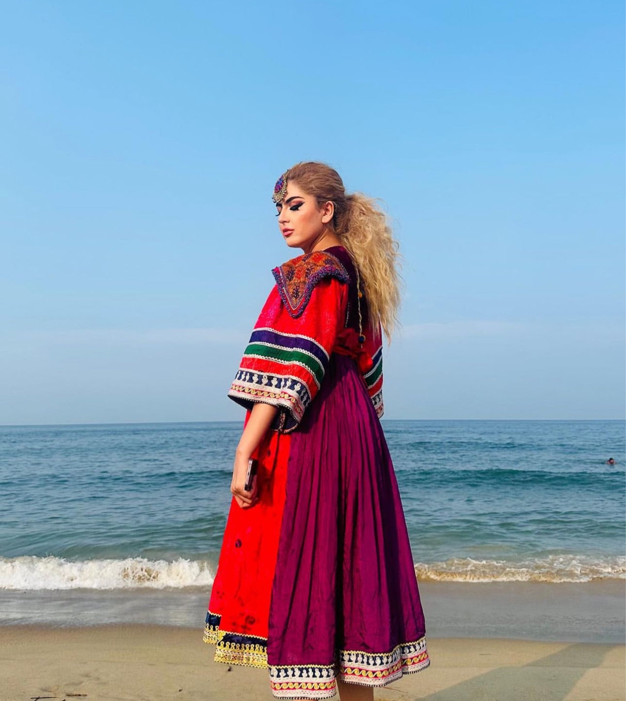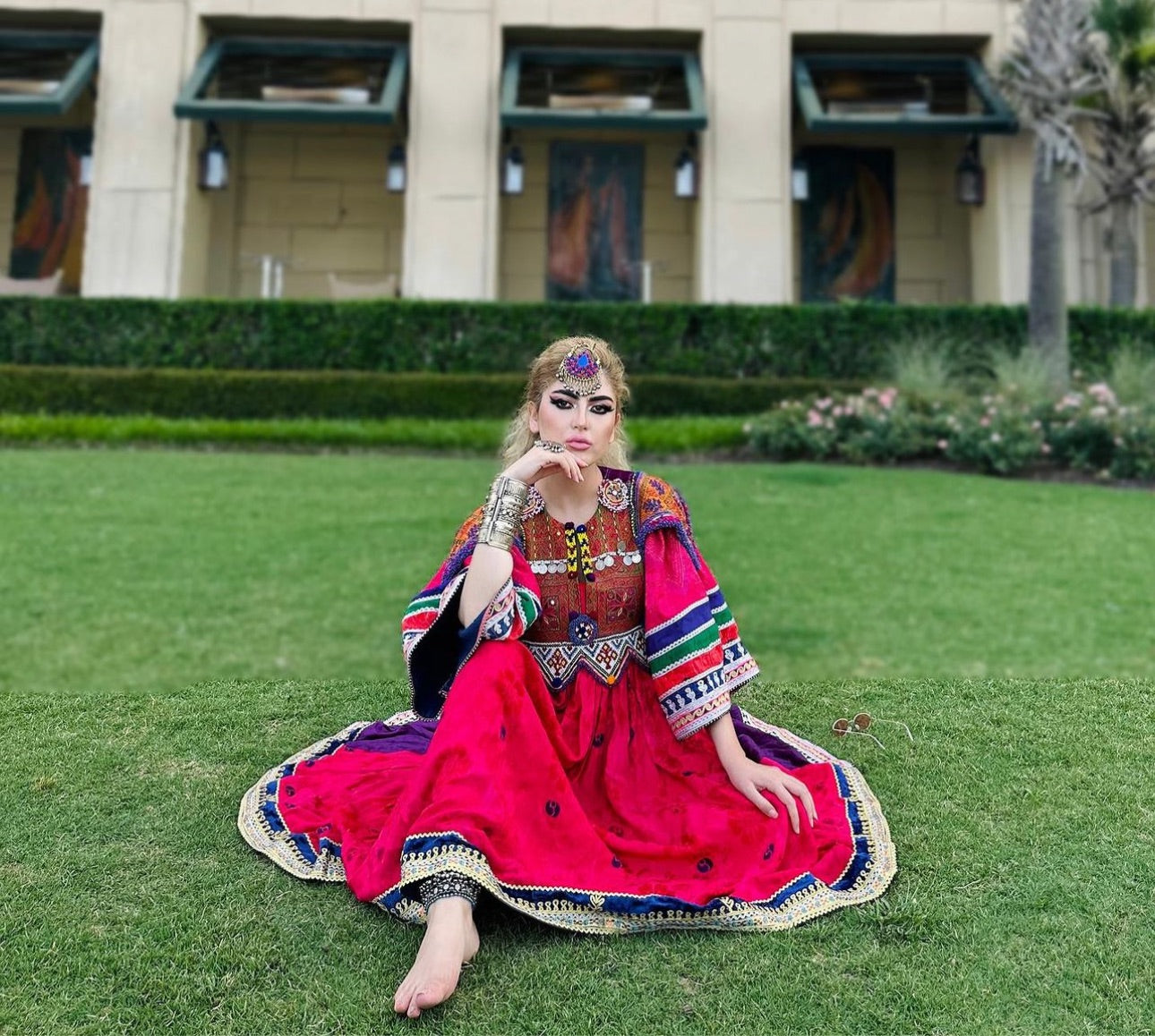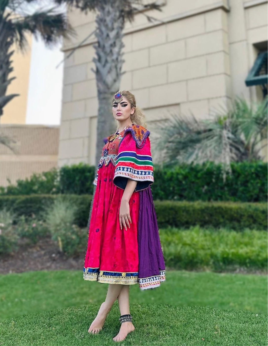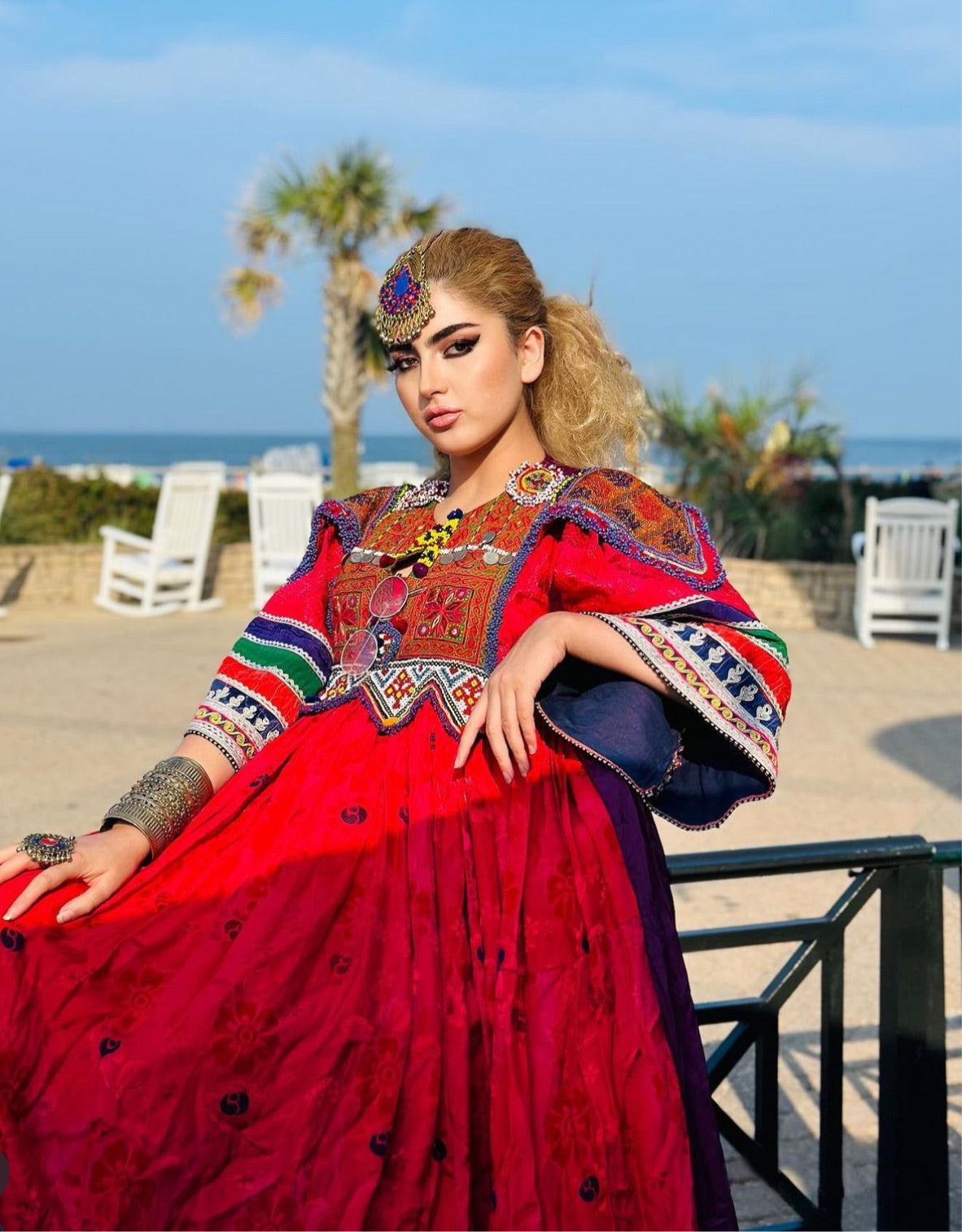 Crafted from high quality antique pieces of amazing handwork picked from traditional Afghan dresses, such as Zartar Dozi, Mora Dozi, Cherma Dozi, and Ayna Dozi. Made with high-quality Luxurious Gul Bakhmal fabric. Available in medium size. Perfect for wedding and special occasions.