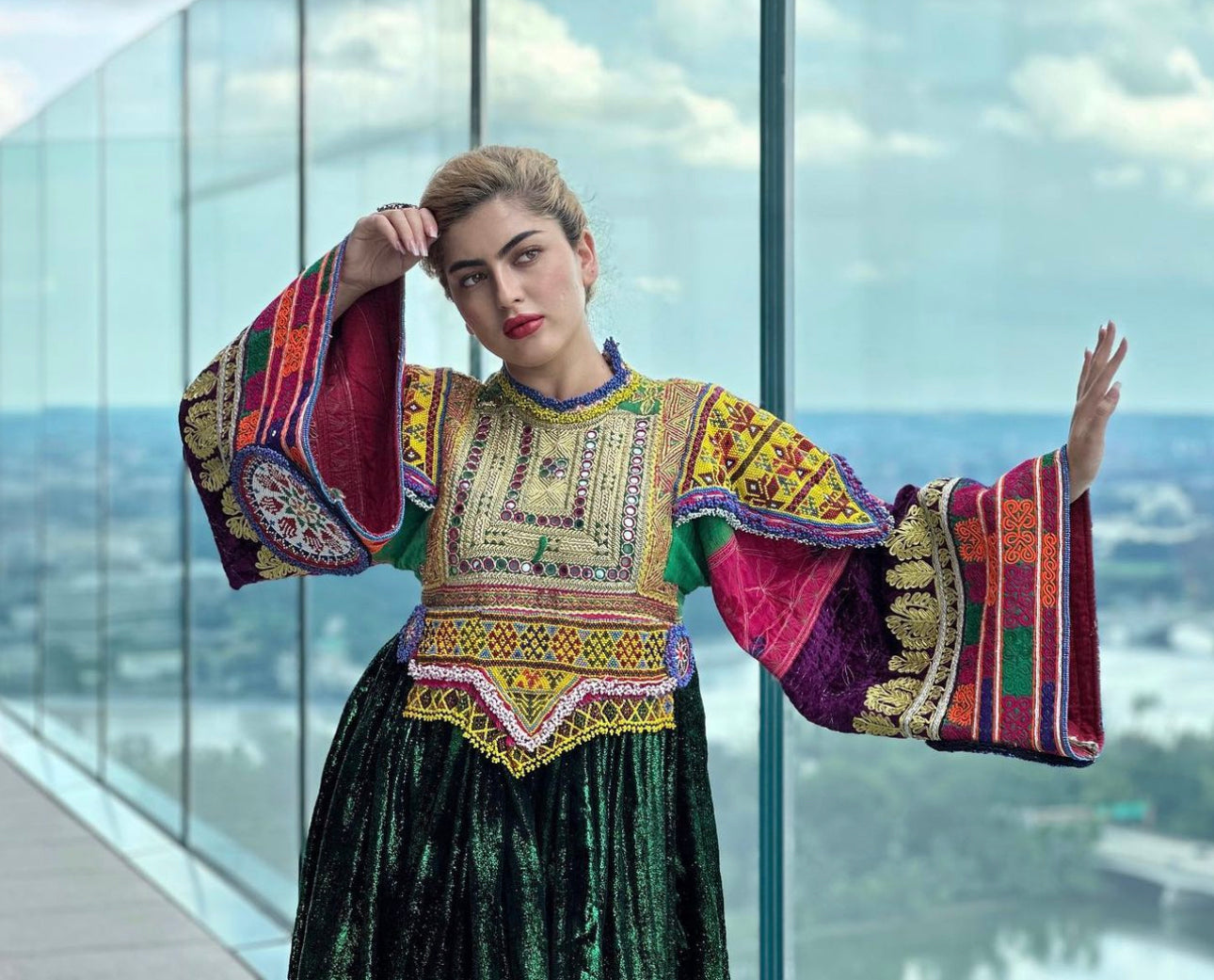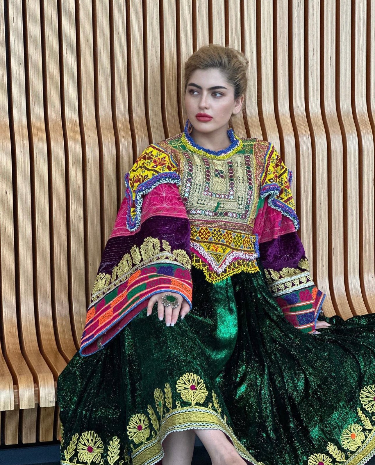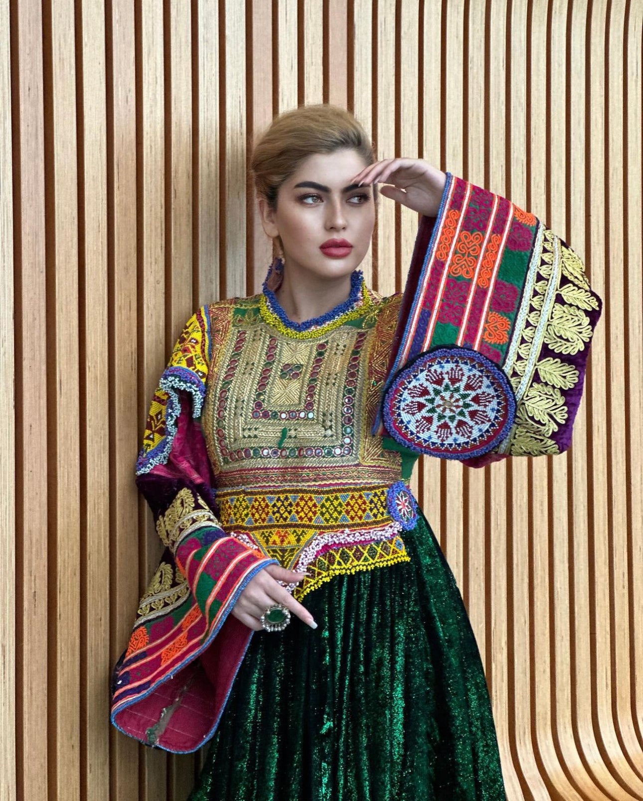 Made from luxurious Zari Bakhmal fabric and featuring a unique blend of traditional Afghan embroidery techniques, including Zartar Dozi, Cherma Dozi, Mora Dozi, Wal Dozi, and Ayna Dozi. Perfect for Nekah, wedding and special occasions and will leave you feeling elegant and unique.